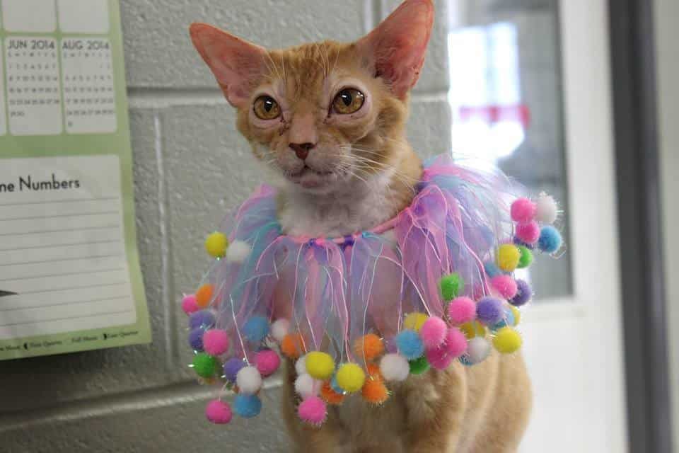 Quando Yoda è arrivato al rifugio nel 2013 aveva solo 6 mesi e nessun membro dello staff sapeva stabilire con precisione a quale razza appartenesse. Col tempo, poi, si è arrivati a ipotizzare che fosse il risultato di un incrocio tra un Cornish Rex e uno Sphynx.